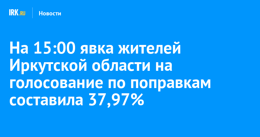 Иркутская областная избирательная комиссия опубликовала данные о явке жителей на голосование по поправкам в Конституцию РФ на 15:00. В лидерах по-прежнему находится Баяндаевский район — 68,15%. Далее Аларский район — 64, 48%, Жигаловский район — 61,60%, Тулунский — 61,54%. Самая низкая явка осталась в Усть-Илимске — проголосовали 27,34% жителей.