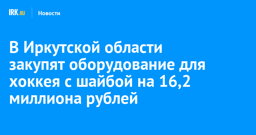 В Иркутской области в рамках федерального проекта «Спорт – норма жизни» национального проекта «Демография» закупается спортивно-технологическое оборудование для совершенствования подготовки по хоккею. На эти цели направят более 16,2 миллиона рублей из федерального и регионального бюджетов, сообщил и.о. министра спорта региона Илья Резник.