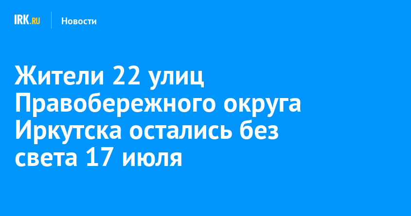 17 июля в 07:42 произошло аварийное отключение электроэнергии в Правобережном округе Иркутска, сообщили в пресс-службе Иркутскэнерго. Без света остались и жители СНТ «Сибиряк».