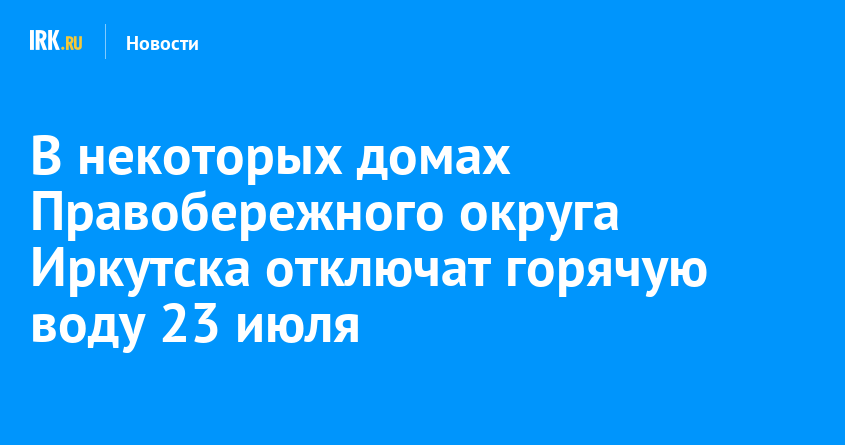 23 июля в нескольких домах Правобережного округа Иркутска отключат горячую воду. Это связано с диагностикой и ремонтными работами, сообщает оператор тепловых сетей.
