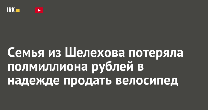 Более полумиллиона рублей похитили мошенники у семьи из Шелехова. Установлено, что супружеская пара выставила на продажу велосипед на сайте бесплатных объявлений. В феврале супруги получили сообщение с просьбой связаться с покупателем через мессенджер. Для перевода предоплаты продавцов попросили перейти по ссылке, указанной в сообщении, а также ввести номер банковской карты и смс-код из банка.