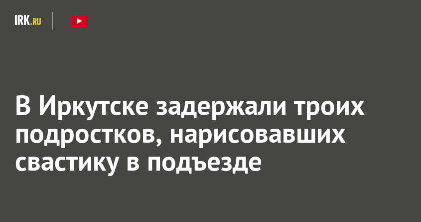 В Иркутске полиция установила и задержала молодых людей, подозреваемых в публичной демонстрации запрещенной в России атрибутики. 18 февраля в дежурную часть обратились жители одной из многоэтажек, обнаруживших на стенах подъезда различные надписи, в том числе и свастику.