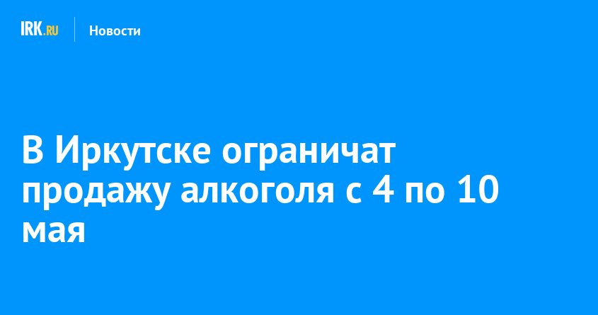 С 4 по 10 мая в Иркутске ограничат продажу алкоголя в магазинах, расположенных в местах проведения культурно-массовых мероприятий и в радиусе 100 метров от них. В эти дни пройдут мероприятия, посвященные празднованию 76–й годовщины Победы в Великой Отечественной войне.