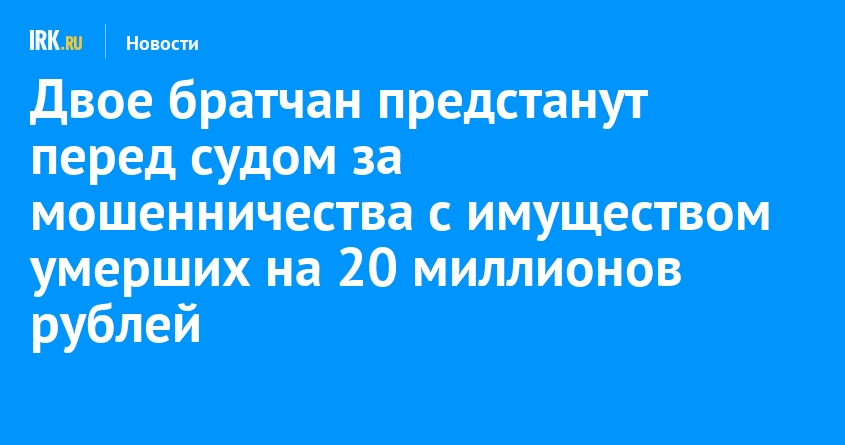 Уголовное дело, возбуждённое по части 3, 4 статьи 159 УК РФ «Мошенничество» направят в Братский городской суд для рассмотрения. Злоумышленникам грозит срок до 10 лет. Родственники умерших граждан по решению судов восстановили свои права на наследуемое имущество.