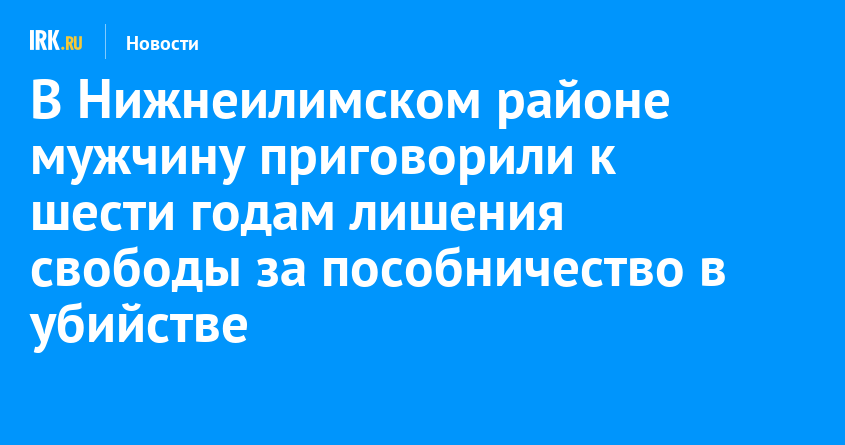 В Нижнеилимском районе местного жителя Евгения Жгара приговорили к шести годам и двум месяцам лишения свободы за пособничество в убийстве. Мужчина семь лет скрывался от следствия.
