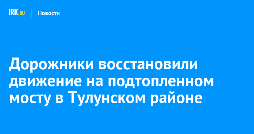 Дорожники полностью восстановили движение по обеим полосам на подтопленном мосту через реку Большой Кукучей в Тулунском районе. Там восстановили конусы и подходу к сооружению.