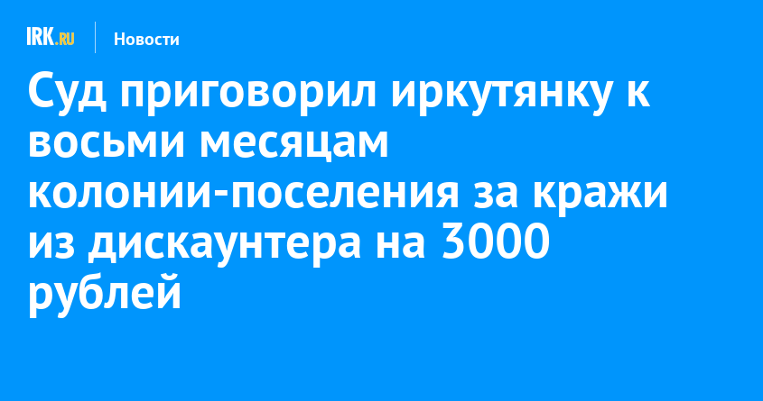 Свердловский районный суд Иркутска приговорил 33-летненюю местную жительницу к восьми месяцам колонии-поселения за кражи из дискаунтера «Хлеб-соль» на 3000 рублей. Об этом сообщает пресс-служба Иркутской областной прокуратуры.