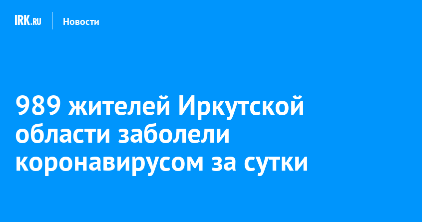 За сутки в Иркутской области коронавирусом заболели 989 человек. Всего с начала пандемии в регионе зарегистрировано 277 338 случаев заражения, сообщает оперштаб.