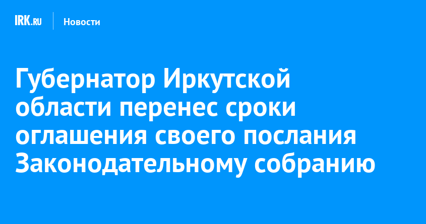 Ежегодное послание губернатора Иркутской области Законодательному собранию в 2022 году, ранее запланированное на 54 сессию, перенесено на более поздний срок. Об этом 23 марта парламентариям сообщил глава региона Игорь Кобзев. Новую дату оглашения послания он не назвал.