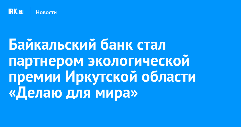 В Иркутске состоялось вручение второй экологической премии Иркутской области «Делаю для мира» – общественной награды за выдающиеся достижения в охране окружающей среды и экологическом просвещении. Региональную премию учредили по инициативе благотворительного фонда «Подари планете жизнь» и управления губернатора и правительства Иркутской области по связям с общественностью и национальным отношениям. Байкальский банк Сбербанка второй год подряд выступает партнером мероприятия, сообщает пресс-служба банка.