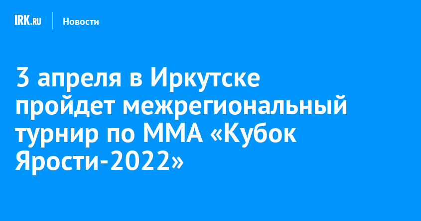 Открытый межрегиональный турнир по ММА «Кубок Ярости-2022» пройдет в Спорткомплексе «Байкал-Арена» в Иркутске 3 апреля. В этом году Иркутск соберёт лучших спортсменов смешанного стиля более чем из десяти регионов России. Около двух тысяч болельщиков будут наблюдать за одним из крупнейших турниров Сибири, сообщают организаторы.