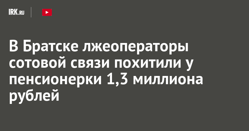 В Братке 60-летняя местная жительница обратилась в полицию. Она рассказала, что неизвестные обманным путем оформили на нее кредит в размере одного миллиона рублей и похитили с личного счета 340 тысяч рублей. Об этом сообщает пресс-служба ГУ МВД России по Иркутской области.