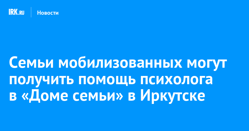 Родственники мобилизованных иркутян могут обратиться за психологической помощью в консультативный центр «Дом семьи». Специалисты помогут снизить тревогу и стресс. Также возможна консультация юриста по правовым вопросам, сообщает пресс-служба администрации Иркутска.