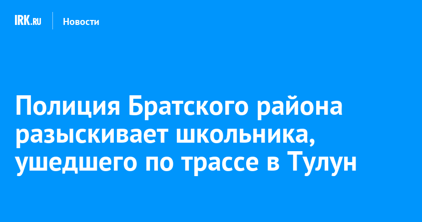Сотрудники полиции разыскивают 13-летнего Даниила Брюзгина. 19 октября мальчик ушел из школы в селе Илир по улице Строительной, 1. Позже его видели на трассе недалеко от села Шерагул. Сейчас местонахождение Даниила неизвестно. Об этом сообщает пресс-служба ГУ МВД России по Иркутской области.