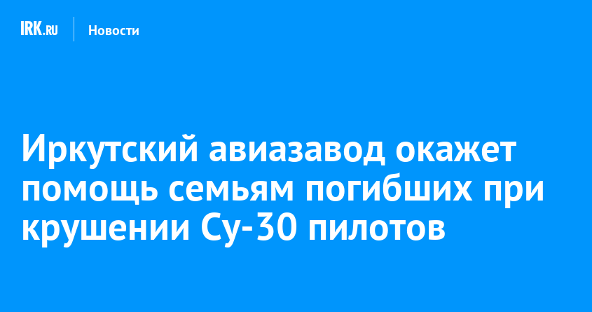 Иркутский авиационный завод и Объединенная авиастроительная корпорация окажут поддержку семьям погибших в Иркутске 23 октября летчиков-испытателей. В том числе предусмотрена выплата материальной помощи, сообщается в телеграм-канале ОАК.