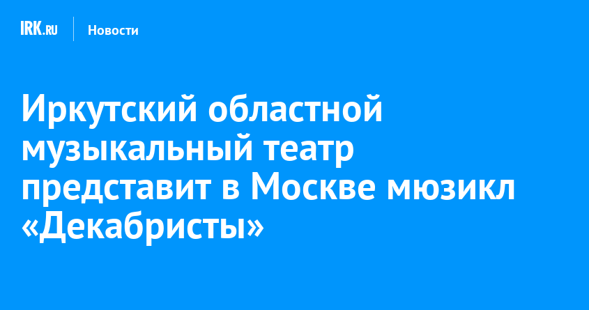 Иркутский областной музыкальный театр имени Н. М. Загурского представит на сцене академического музыкального театра имени К. С. Станиславского и В. И. Немировича-Данченко в Москве мюзикл «Декабристы». Показ состоится 1 ноября в 19:00 по московскому времени. Об этом сообщает пресс-служба правительства Иркутской области.