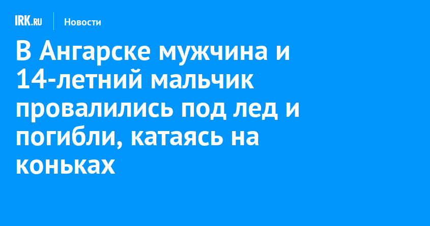 1 ноября на карьере в районе Цементный города Ангарска провалились под лед и погибли 14-летний мальчик и 56-летний мужчина. На место происшествия выехали спасатели и следственно-оперативная группа в составе следователей СК и сотрудников полиции. Следователи проводят доследственную проверку, сообщает пресс-служба СУ СК России по Иркутской области.