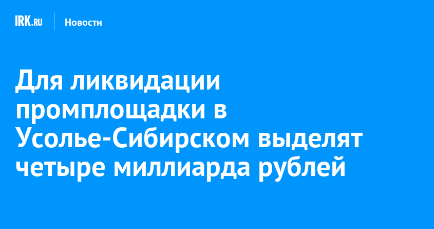 Более четырех миллиардов рублей направят на работы по ликвидации промплощадки в Усолье-Сибирском. Деньги выделят из федерального бюджета. 2 ноября соответствующее распоряжение подписал председатель Правительства РФ Михаил Мишустин. Он отметил, что комплекс первоочередных мероприятий на площадке завершили, угроза экологической катастрофы устранена. Об этом сообщает пресс-служба правительства Иркутской области.