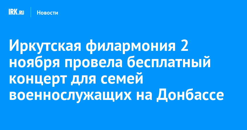 В Иркутске 2 ноября стартовала акция IRK.ru «Сибирская поддержка». Семьи военнослужащих на Донбассе получили бесплатные билеты на концерт в филармонии. Со сцены прозвучали произведения Петра Ильича Чайковского. Акция долгосрочная, в ней примут участие культурные учреждения Иркутска.