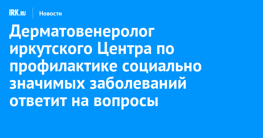 Читатели IRK.ru могут анонимно задать вопросы врачу дерматовенерологу Иркутского СПИД Центра Виктории Надирадзе. Обращения можно отправить на почту questions@tvoyirk.ru. Ответы будут опубликованы на сайте в конце ноября 2022 года.