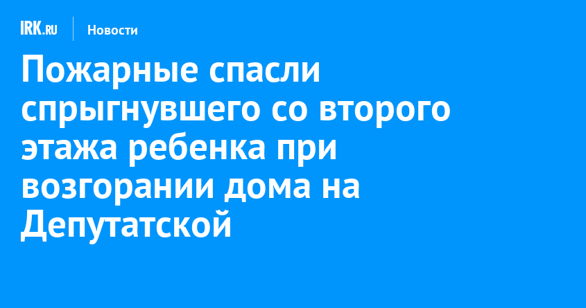 8 ноября в 13:39 в пожарно-спасательную службу поступило сообщение о возгорании в одной из квартир на втором этаже пятиэтажного кирпичного дома на Депутатской в Иркутске. Спасатели прибыли на место пожара и увидели на подоконнике горевшей квартиры ребенка, который собирался спрыгнуть вниз. Пожарный Дмитрий Перевозный, подбежав к окну, поймал падающего ребёнка. 10-летний мальчик жив, его отправили в больницу для обследования, сообщает пресс-служба ГУ МЧС России по Иркутской области.