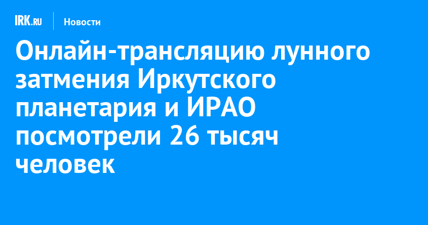 8 ноября на YouTube канале Иркутского регионального астрономического общества прошла онлайн-трансляция полного лунного затмения. К ней подключились более 26 тысяч человек из разных стран мира. Из них 22,5 тысячи — из России. Трансляция длилась около четырех часов, сообщает пресс-служба Иркутского планетария.