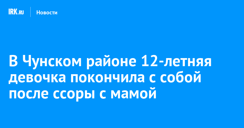В поселке Веселый Чунского района семиклассница покончила с собой после ссоры с мамой. Об этом на своей странице «ВКонтакте» рассказала уполномоченный по правам ребенка в Иркутской области Татьяна Афанасьева.