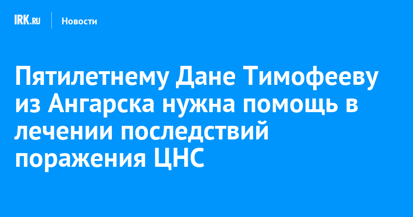 Русфонд собирает средства для пятилетнего Дани Тимофеева из Ангарска. Мальчику нужна помощь для лечения последствий поражения центральной нервной системы. Всего требуется 168 900 рублей, уже собрано 48 783 рубля, не хватает 119 117 рублей.