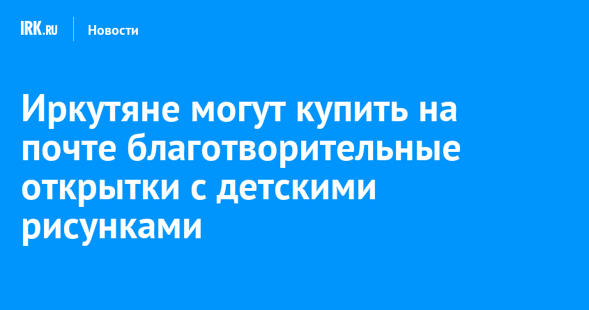 В отделениях почты в Иркутске теперь можно купить благотворительные открытки с детскими рисунками. В программе участвуют 2159 почтовых отделений в 60 регионах России, в том числе 29 почтовых отделений Иркутска, сообщает пресс-служба АО «Почта России».