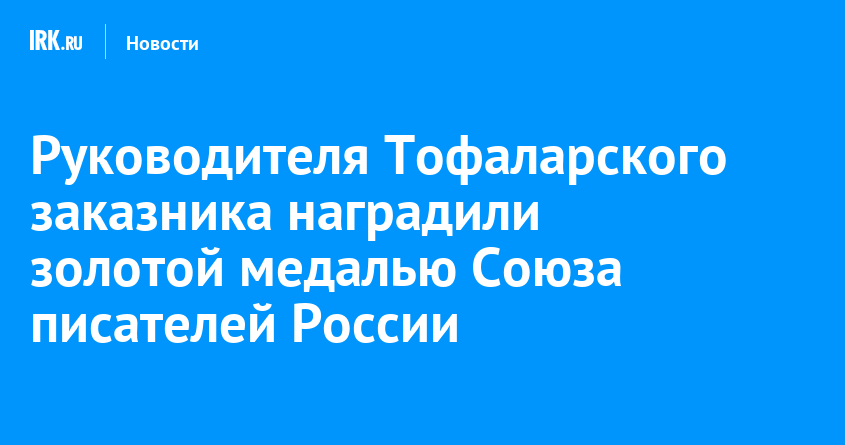 Союз писателей России отметил руководителя Тофаларского заказника Владимира Богатыря. Автор книг о сибирской природе, традиционной культуре таёжного быта и бережном отношении к нерукотворному наследию планеты награждён золотой медалью «За мастерство и подвижничество во благо русской литературы», сообщается на странице ФГБУ «Заповедное Прибайкалье».