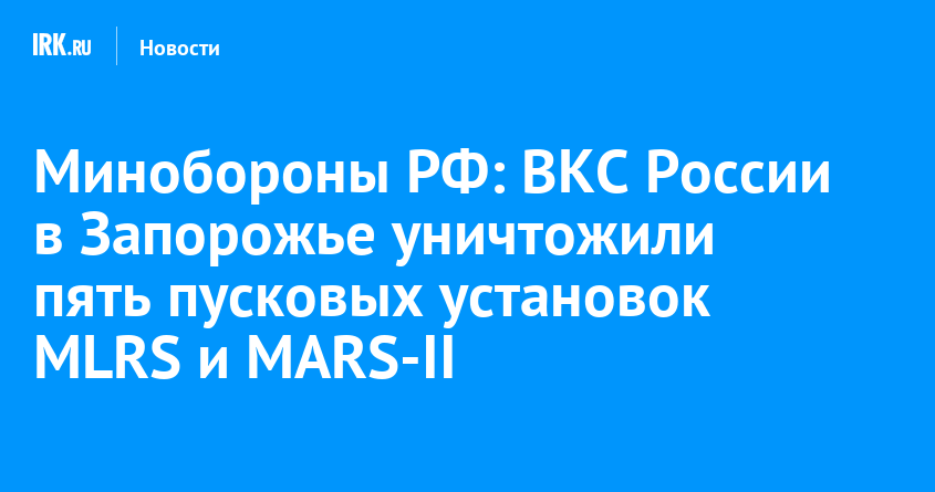 В Министерстве обороны РФ рассказали о ходе специальной военной операции. ВКС России в результате ударов высокоточным оружием в районах населенных пунктов Шевченковское и Григоровское Запорожской области уничтожили пять пусковых установок реактивных систем залпового огня MLRS и MARS-II. В районе населенного пункта Ильичевка ДНР ликвидировали две пусковые установки HIMARS производства США.