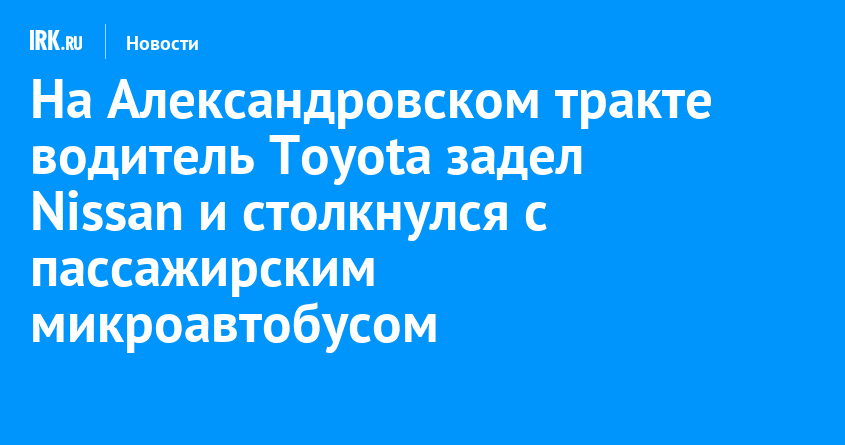 17 декабря около 13:00 на Александровском тракте, в 11-ти километрах от Иркутска, произошло ДТП. По предварительной информации, 28-летний водитель Toyota Corolla Fielder касательно задел Nissan X-Trail, после чего столкнулся с движущимся по «встречке» маршрутным микроавтобусом Ford. Пассажирский транспорт от удара съехал в кювет.