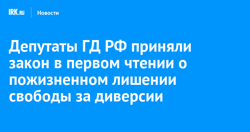 Создание диверсионного сообщества также будет наказываться пожизненным заключением. За участие в таком сообществе будет грозить до 10 лет лишения свободы, а за пособничество в совершении диверсии — от 10 до 20 лет.