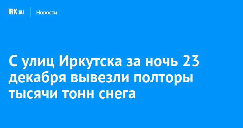 За ночь 23 декабря с центральных улиц и основных магистралей Иркутска вывезли свыше полутора тысяч тонн снега. Работы на основных дорогах выполняли более 200 рабочих и 72 единицы специализированной техники – комбинированные дорожные и тротуароуборчные машины, тракторные щетки, лаповые снегопогрузчики, автогрейдеры, самосвалы, погрузчики и бобкеты, сообщает пресс-служба администрации города.