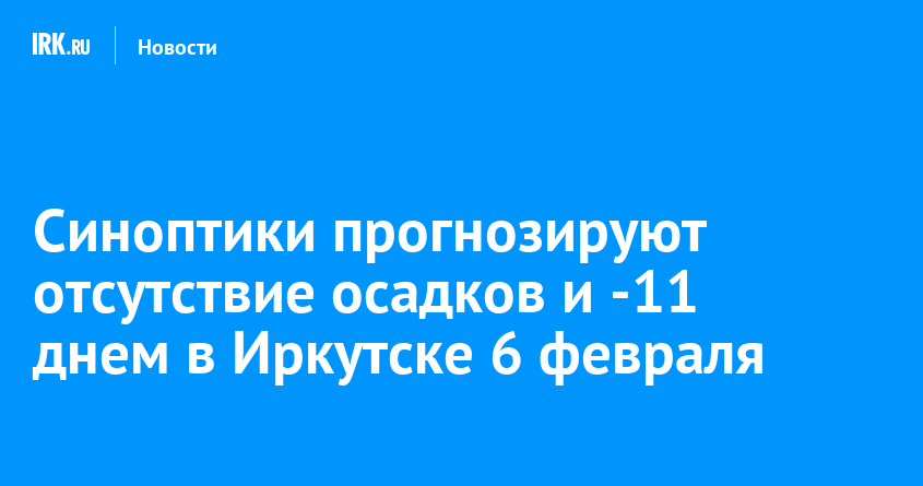 6 февраля в Иркутске ожидается переменная облачность, без существенных осадков, ветер до 6 метров в секунду. Температура днём -9… -11 градусов, сообщает Иркутский гидрометцентр.