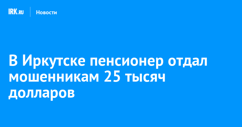 В Иркутске в дежурную часть полиции обратился 83-летний пенсионер. Он рассказал, что его обманули мошенники и забрали 25 тысяч долларов, что составляет около двух миллионов рублей. Деньги мужчина копил в течение нескольких лет и планировал потратить их на улучшение условия проживания, сообщает пресс-служба ГУ МВД России по Иркутской области.
