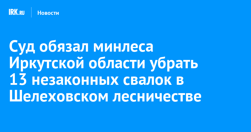 Прокуратура направила в суд иск с требованиями об обязании Министерства лесного комплекса Иркутской области организовать уборку свалок на землях лесного фонда. Суд иск прокурора удовлетворил. Исполнение решения суда находится на контроле у прокуратуры.