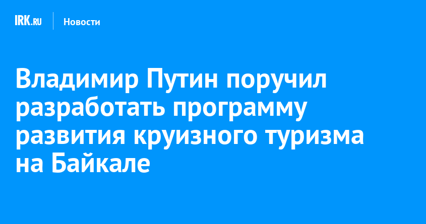 Программу развития круизного туризма и пассажирского судоходства на Байкале на период до 2035 года поручил проработать президент Российской Федерации Владимир Путин федеральному правительству совместно с комиссией государственного Совета Российской Федерации по направлению «Транспорт». Программа должна предусматривать мероприятия по совершенствованию речных портов и причалов, обеспечение соблюдения экологических требований. Правительству страны необходимо представить доклад президенту до 15 октября, сообщает пресс-служба кабмина Иркутской области.