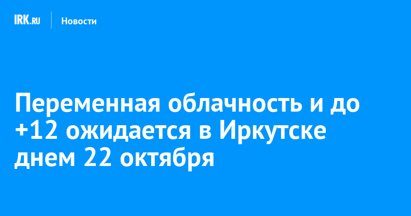 В Иркутске 22 октября переменная облачность, без существенных осадков. Ветер 7-12 метров в секунду, температура +10… +12 градусов, сообщает Иркутский гидрометцентр.