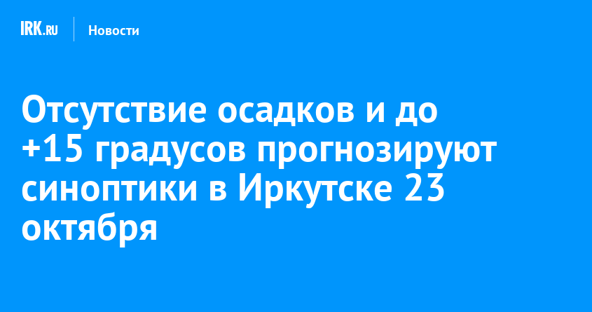 В Иркутске 23 октября ожидается переменная облачность, без существенных осадков. Ветер 5-10 метров в секунду, температура +13… +15 градусов, сообщает Иркутский гидрометцентр.