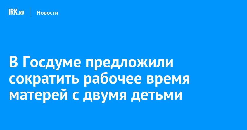 Депутаты от фракции ЛДПР представили законопроект, предлагающий сократить на час рабочее время женщин с двумя и более детьми младше 18 лет. 25 ноября законопроект отправят на отзыв правительства, затем внесут в Думу, сообщает РБК.
