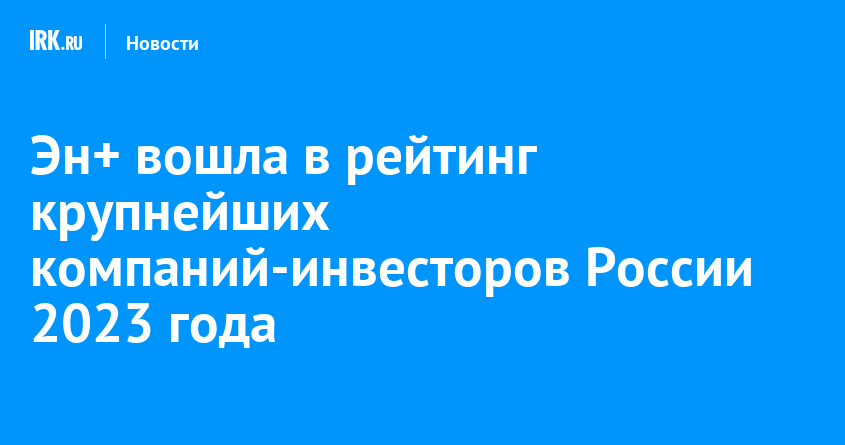 Российский энергохолдинг Эн+ занял 11 место в рейтинге крупнейших компаний-инвесторов России 2023 года. В список вошли компании, зарегистрированные в России или принадлежащие российским акционерам более чем на 50%. По сравнению с прошлым годом Эн+ поднялась на 10 позиций. В 2022 году объем инвестиций компании составлял 118,5 миллиарда рублей. Рейтинг учитывает совокупный объем инвестиций на приобретение основных средств и нематериальных активов, выкуп акций, вложения в рамках совместных предприятий и новых бизнесов в 2022 году.