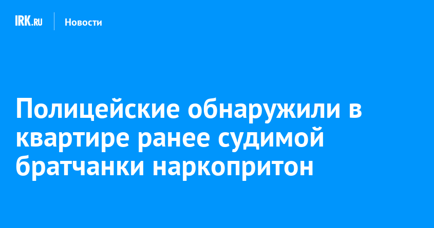 Полицейские в Братске задержали подозреваемую в содержании наркопритона. В ходе оперативно-разыскных мероприятий полицейским поступила информация о том, что 44-летняя ранее судимая братчанка с октября текущего года систематически предоставляла свою квартиру на улице Железнодорожной наркозависимым для употребления запрещенных веществ. Взамен гости делились с ней наркотиками, сообщает пресс-служба ГУ МВД России по Иркутской области.