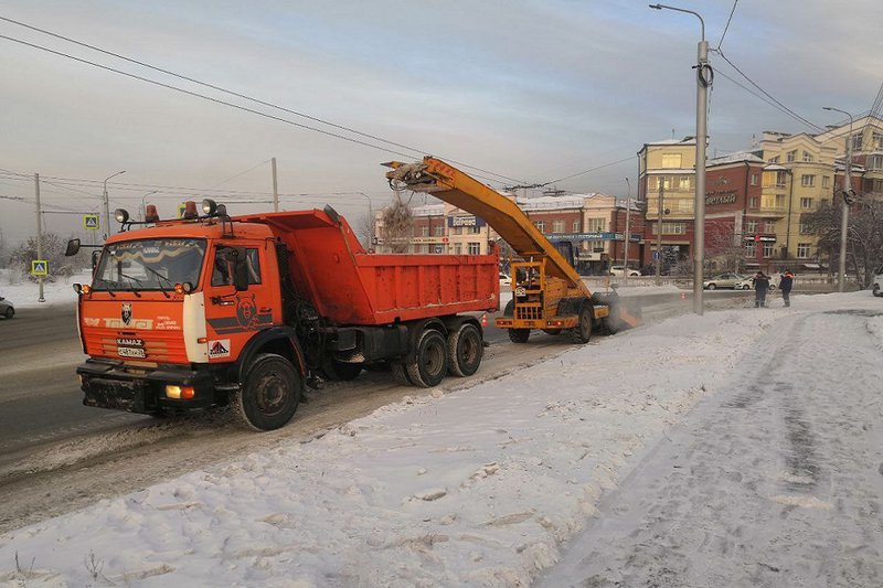 Специалисты убирают снег с улиц города. Фото пресс-службы администрации Иркутска