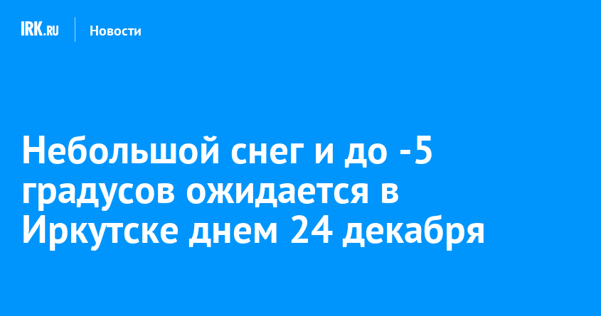 В Иркутске 24 декабря переменная облачность, небольшой снег. Ветер 3-8 метров в секунду, температура -3… -5 градусов, сообщает Иркутский гидрометцентр.