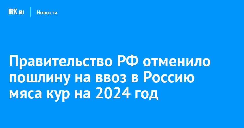 С 1 января по 31 декабря 2024 года в России отменяются таможенные пошлины на ввоз замороженного мяса домашних кур в объёме до 140 тысяч тонн. Решение направлено на поддержание стабильных цен на эту продукцию благодаря наращиванию предложения на внутреннем рынке, сообщает пресс-служба Правительства РФ.