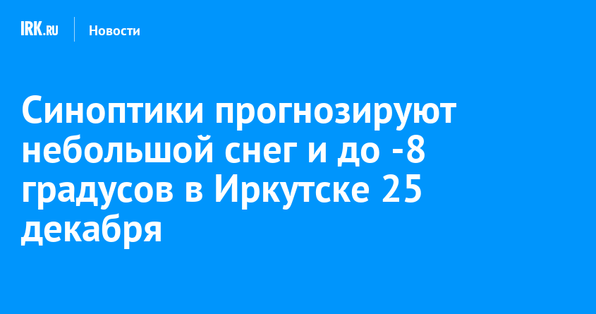 В Иркутске 25 декабря ожидается переменная облачность, небольшой снег. Ветер 5-10 метров в секунду, температура днем -6… -8 градусов, сообщает Иркутский гидрометцентр.