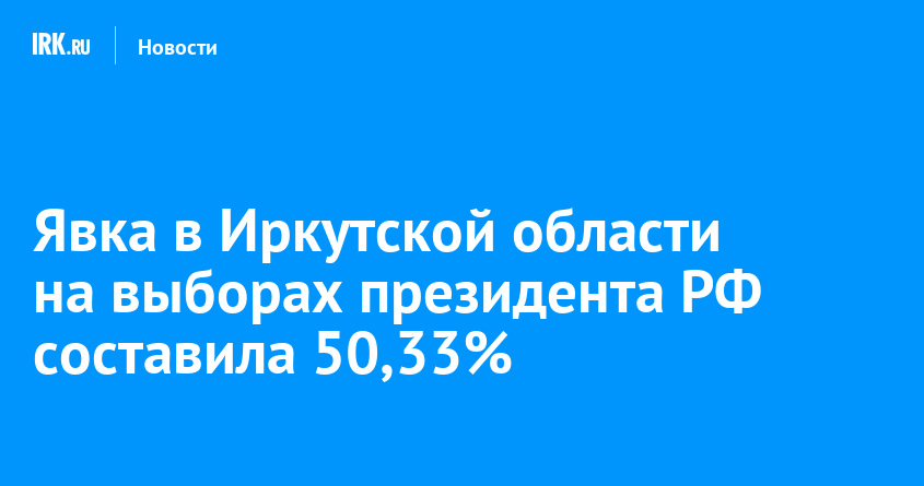 Избирательная комиссия Иркутской области опубликовала данные по явке на выборах в регионе. На 12:00 17 марта, цифра составила 50,33%. Всего в области проголосовали 918 279 человек.