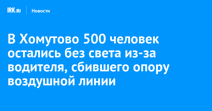 В селе Хомутово Иркутского района водитель легкового автомобиля врезался в опору воздушной линии. В результате ДТП железобетонная опора повисла на проводах. Из-за этого без электроэнергии осталась часть жителей домов на улицах 50 лет Октября, Академический, Березовая, Веселый, Гаражная, Гоголя, Кирова, Колхозная, Кольцовская, Кольцовский, Набережная, Партизанская, Пушкина, Солнечная, Степная, Тупик, Федорова, сообщается в телеграм-канале «Свет38».