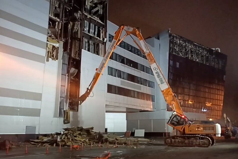 Ночью 24 марта спасатели приступили к созданию проема с западной стороны здания, это позволит облегчить доступ к концертному залу. Разбор конструкций продолжается с применением тяжелой техники, сообщили в МЧС России.